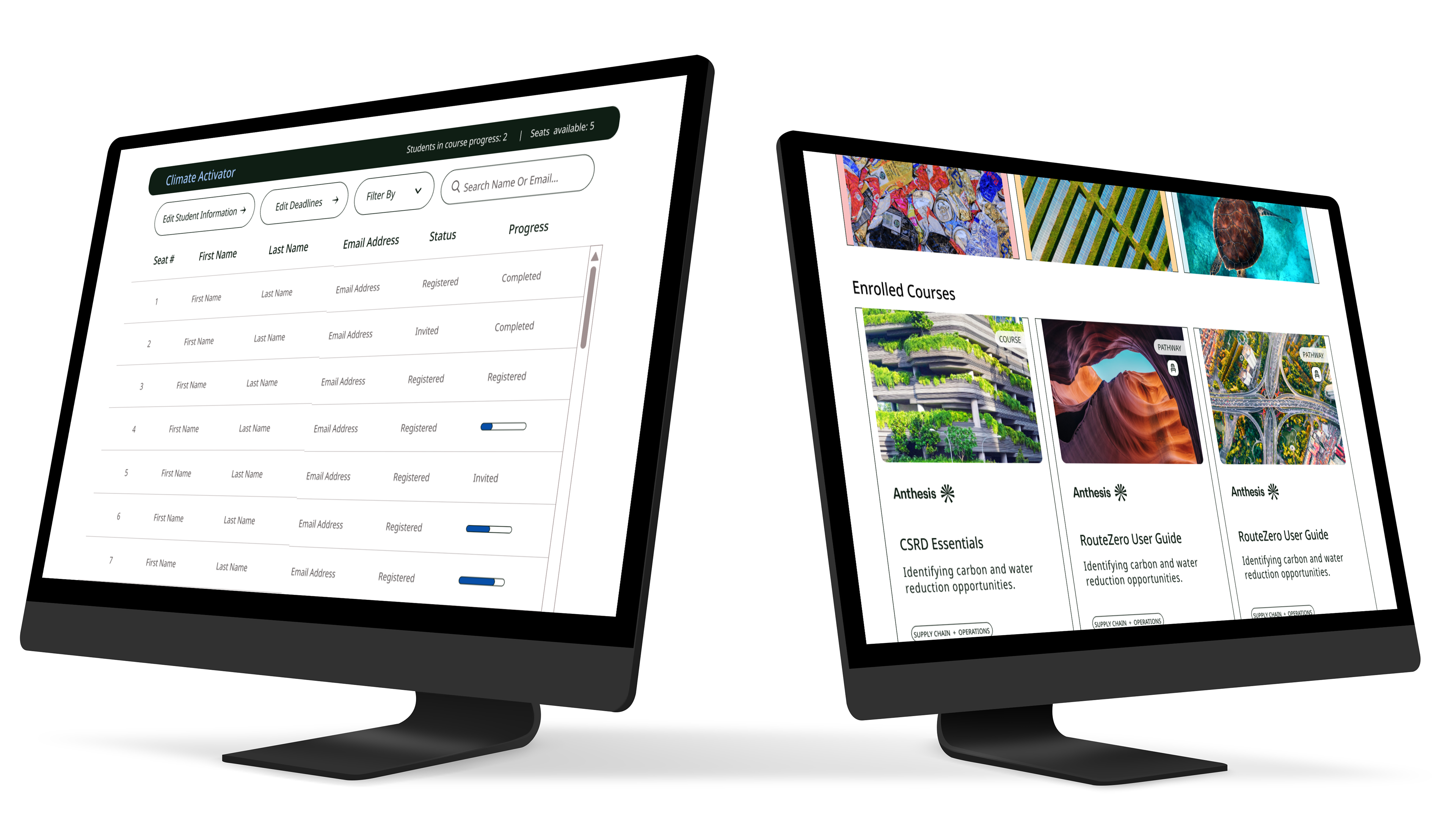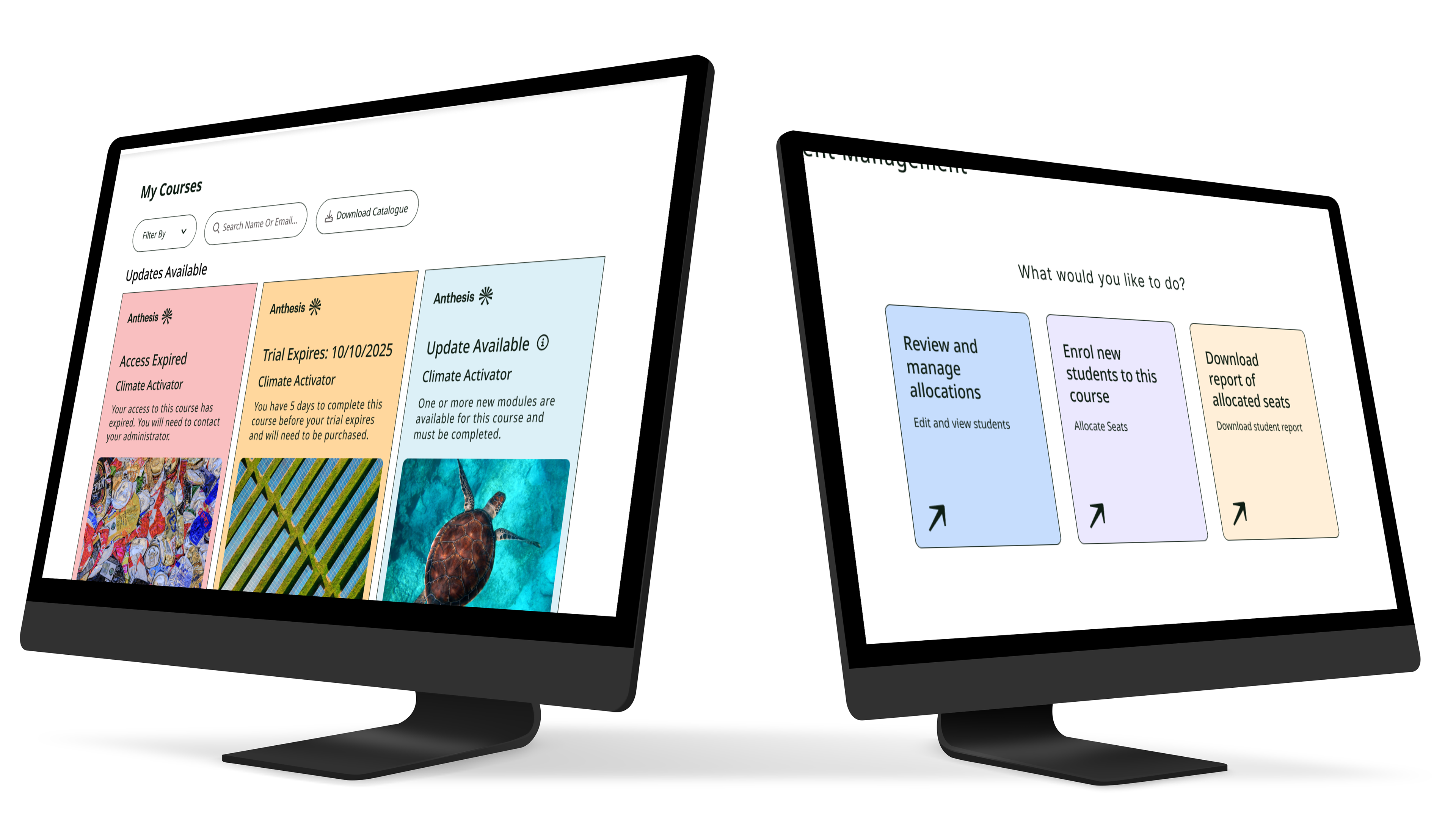 Course Catalogue (for Administrators): Providing administrators with browsing access enables them to easily discover relevant courses to improve their company's sustainability impact.