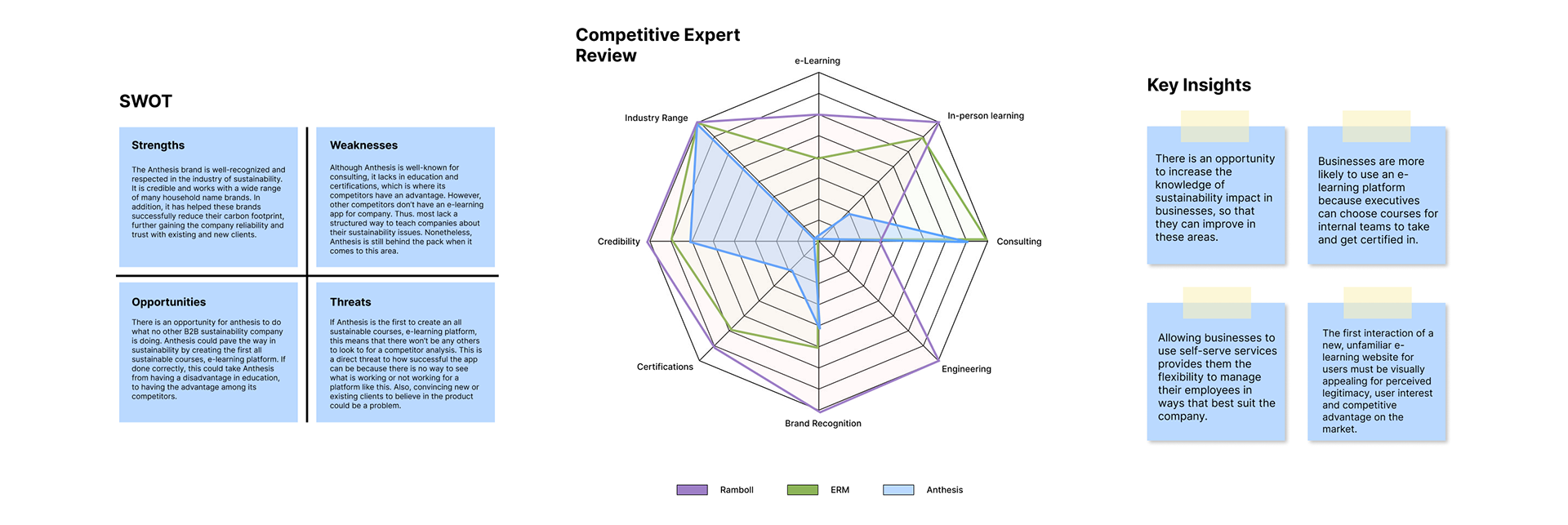 My secondary research centered on a Competitive Expert Review, comparing the proposed solution (Anthesis) against industry peers (Bambuu and ERM). This provided crucial market context and validated the need for the product.