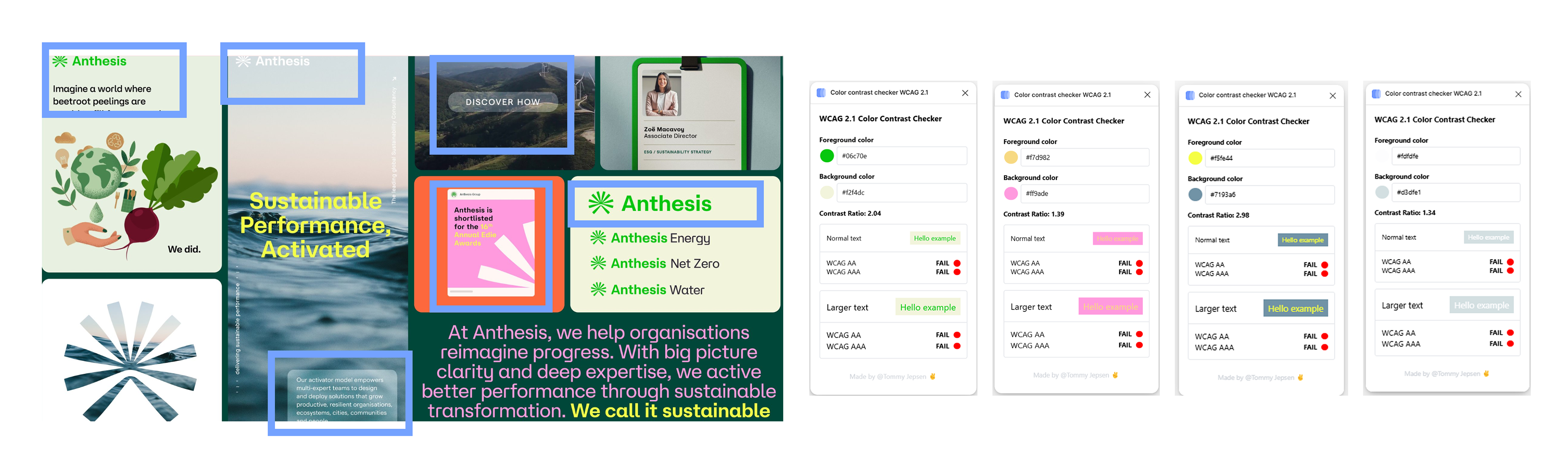 A critical audit of the original Anthesis brand revealed deep structural problems: a failure to adhere to WCAG compliance and a highly inconsistent visual language. This instability translated directly into a poor user experience, where the visual chaos significantly increased the cognitive load on the user. This undermined the platform's perceived value and the credibility of its sustainability expertise by making the mandatory learning environment feel overwhelming and untrustworthy.