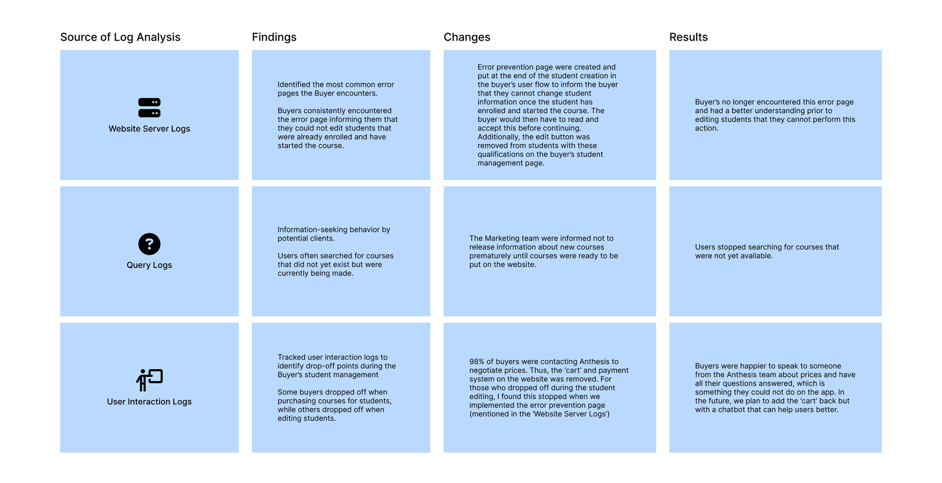 Pricing Friction: User Interaction Logs tracked drop-off points during the purchasing process. This analysis led to a significant strategic change: the removal of the self-service cart and payment system entirely, as 98% of buyers preferred to contact Anthesis directly to negotiate prices. This change immediately led to happier buyers who felt they could speak directly to the team, thus streamlining the conversion funnel by focusing on human interaction over automated checkout.